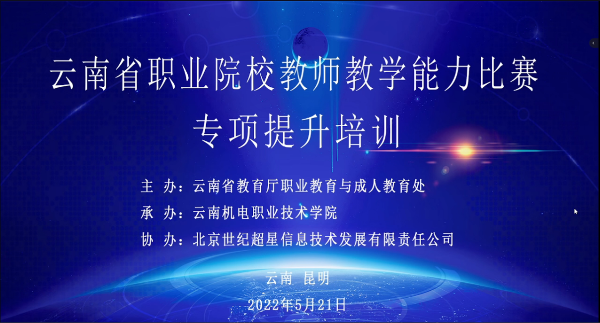 为深入贯彻习近平总书记关于职业教育的重要指示,落实全国职业教育大会精神,按照《国家职业教育改革实施方案》《职业教育提质培优行动计划(2020-2023年)》等部署,围绕立德树人根本任务,切实推进国家江南app官方下载苹果版 标准落地,积极探索“岗课赛证”融合育人模式,推进高水平教师江南app官方下载苹果版 团队建设,提高教师的师德践行能力、专业江南app官方下载苹果版 能力、综合育人能力和自主发展能力,由云南省教育厅职业教育与成人教育处主办、云南机电职业技术江南广告 承办、北京世纪超星信息技术发展有限责任公司协办的2022年云南省职业院校教师江南app官方下载苹果版 能力大赛专项提升培训于2022年5月21日举行。