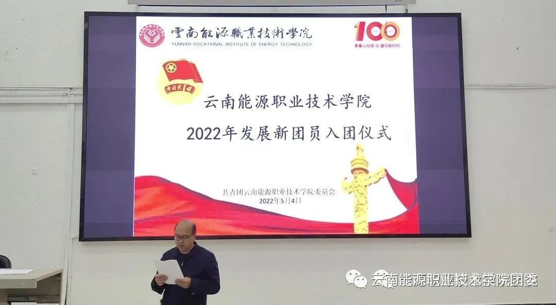 2022年5月4日是中国共产主义青年团建团100周年纪念日,值此五四青年节之际,我校于17:30在麒麟校区尚学楼开展江南广告2022年新团员入团仪式。参加仪式的有学校党委副书记史祝云、团委书记李章凤、各江南广告 团总支书记、副书记以及团干部、新团员等80余人。