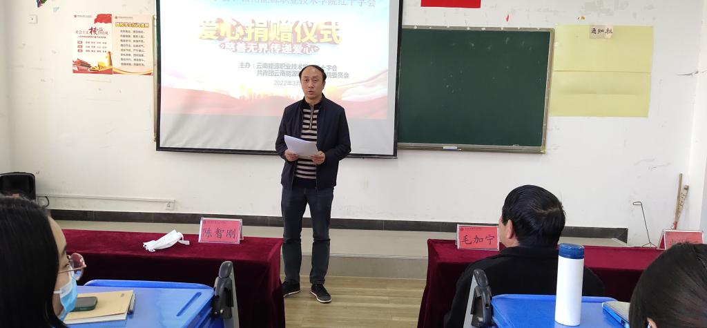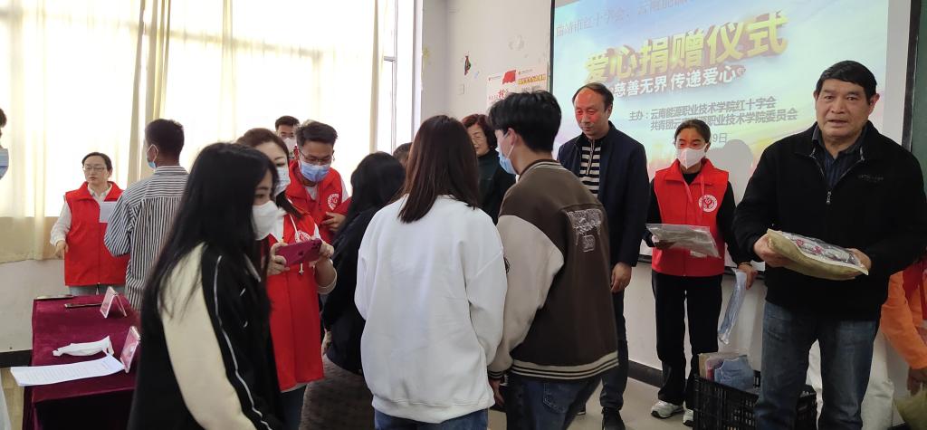 学校于2022年3月9日下午在麒麟校区尚学楼B1-9室举行了曲靖市红十字会、学校红十字会2022年爱心捐赠仪式,出席本次捐赠仪式的有:学校党委书记毛加宁,学校党委副书记、校长陈智刚,学校党委副书记、红十字会会长史祝云,学校党委委员、副校长、红十字会副会长夏琼。本次仪式由学校团委书记李章凤主持。