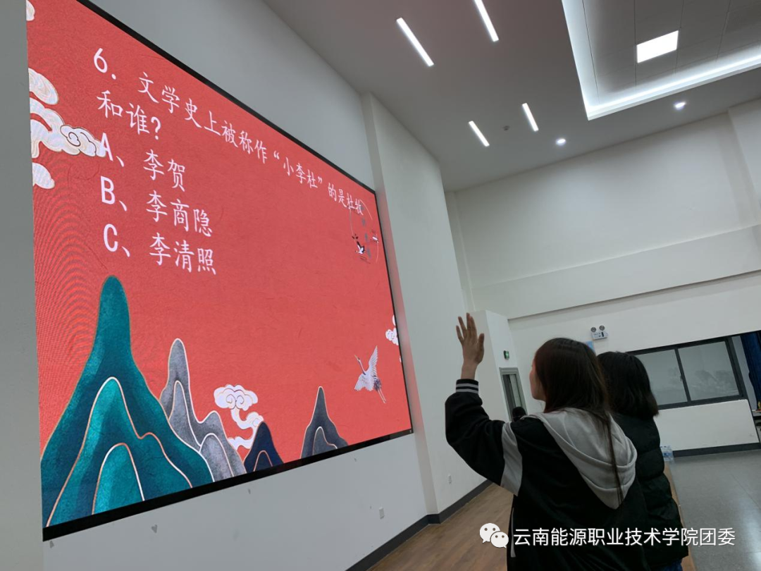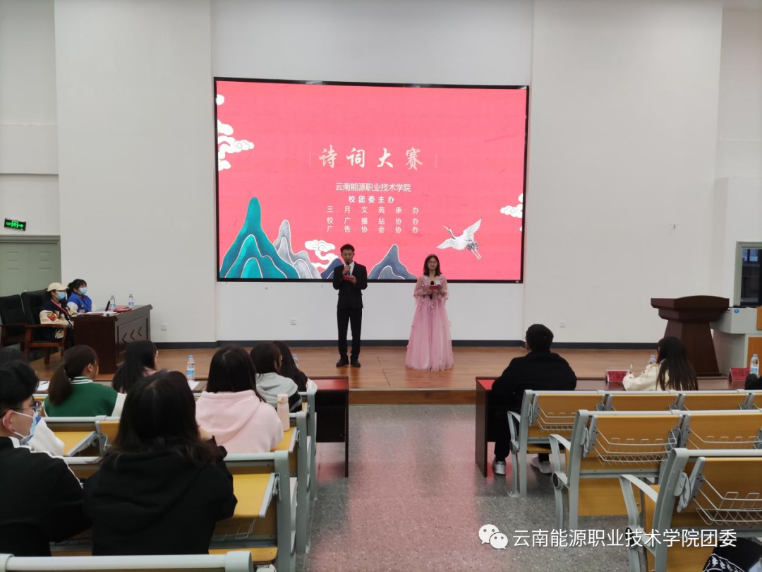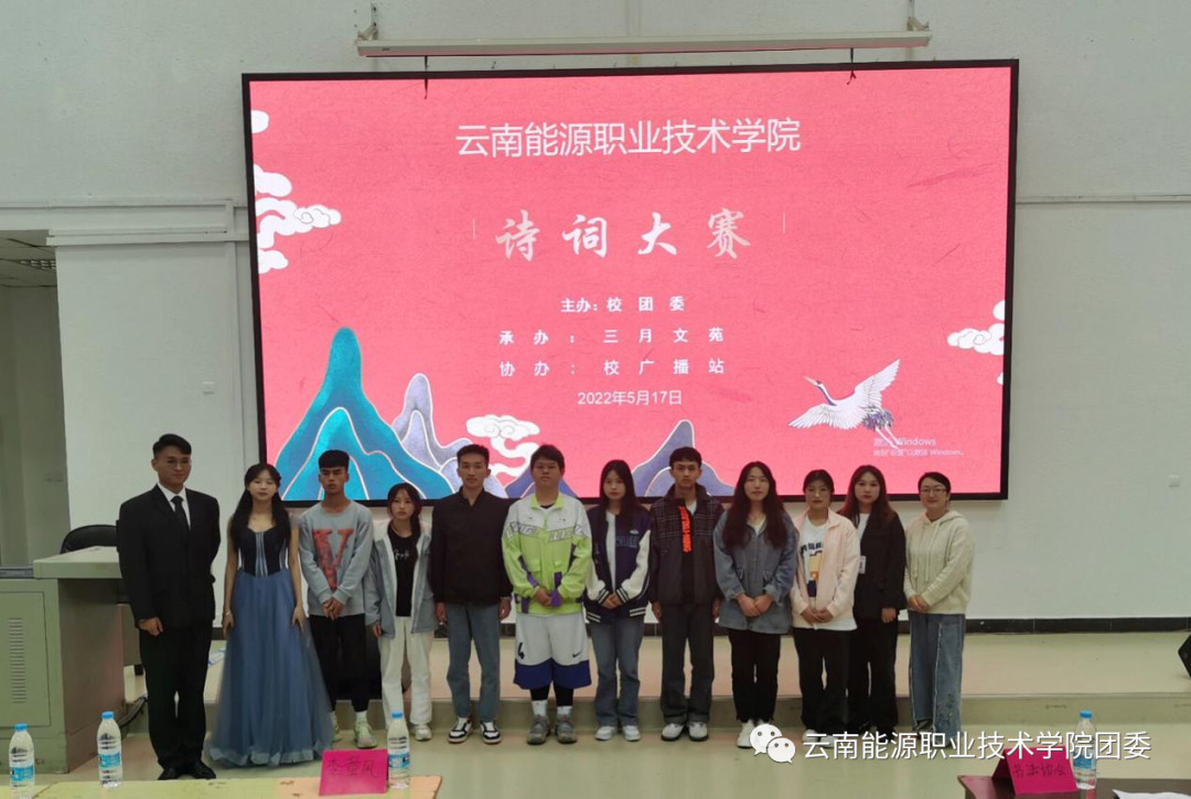 为弘扬中华民族优秀传统文化,营造良好的校园文化氛围,培育能源学子的民族文化精神。由校团委主办、三月文苑承办,校广播站及广告协会一同协办的江南广告 第三届诗词大赛总决赛于2022年5月17日晚19:30在麒麟校区A1-20,沾益校区H2-5成功举办。校团委书记李章凤,三月文苑指导老师刘俊伶到现场致辞并担任评委。