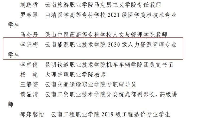 为引领广大能源学子深入学习宣传贯彻习近平新时代中国特色社会主义思想和在庆祝中国共产主义青年团成立100 周年大会上的重要讲话精神,帮助广大青年学生上好与现实相结合的“大思政课”,在社会课堂中“受教育、长才干、作贡献”,坚定信念听党话、跟党走,以实际行动迎接党的二十大胜利召开。校团委紧紧围绕理论普及宣讲、党史学习教育、乡村振兴促进、发展成就观察、民族团结实践等5个方面的内容,多层次、全覆盖、多样化的方式动员全校学生以团队实践和个人分散实践的形式,按照“校、院、个人分散”三级梯队模式参与2022暑期“三下乡”社会实践活动,并按照团省委要求推荐优秀个人和团队参与省级团委评选,最终我校人文与艺术设计江南广告 人力201班学生李宗梅被评为云南省2022 年“三下乡”社会实践活动先进个人。