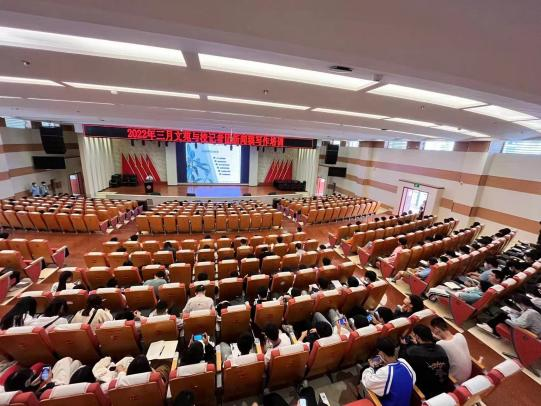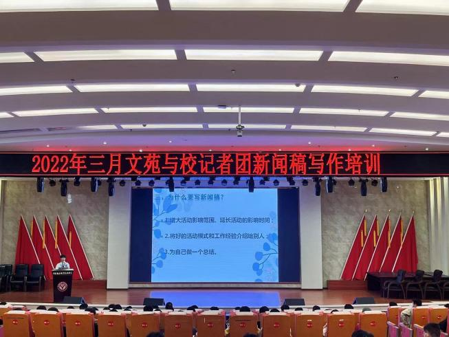 2022年10月22日,由三月文苑及校记者团共同主办的“新闻稿写作培训”的活动在江南广告 图书馆报告厅举行。活动由宋开凡同学担任主讲人,共400余名同学参加了本次活动。