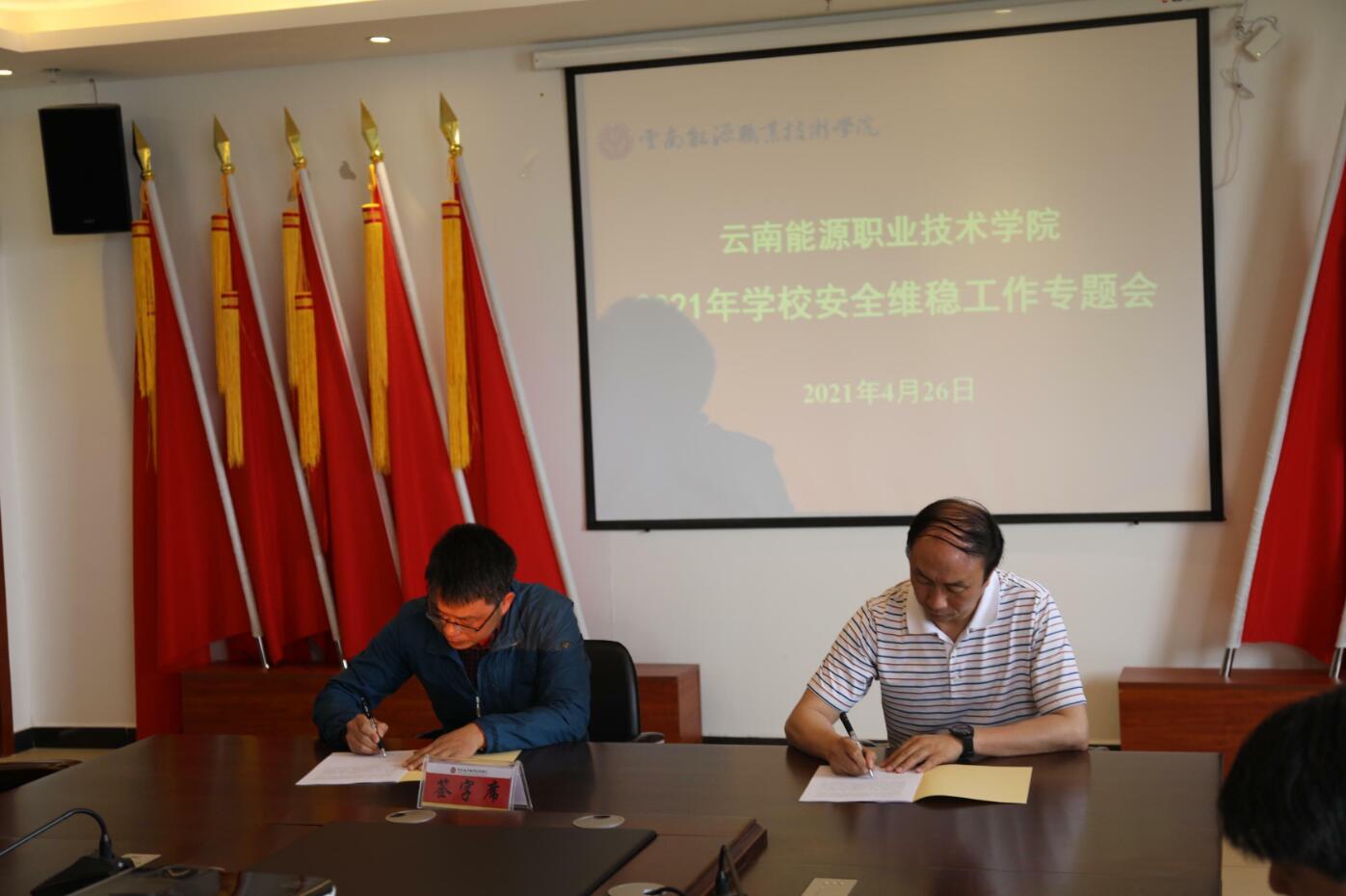 会上陈智刚校长、夏琼副校长分别与职能部门负责人签订了2021年平安校园建设工作目标责任书。