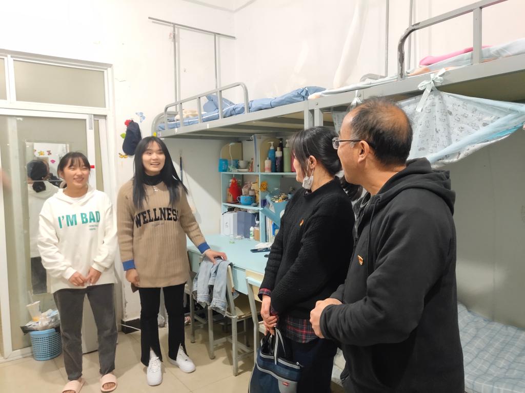 走访过程中,院领导、老师与宿舍同学亲切交谈,仔细聆听了同学们假期学习生活情况,询问同学们返校后的开学准备和学习计划,并就相关问题进行了交流,针对大家共同关心的学习和生活上的问题提出了建议。嘱咐同学们要严格遵守学校疫情防控相关要求的同时,还特别叮嘱同宿舍的同学们要相互关心关爱,要注意宿舍安全,要常通风、勤打扫,并希望同学们在新学期调整好心态,以饱满的热情投入到学习生活中去。
