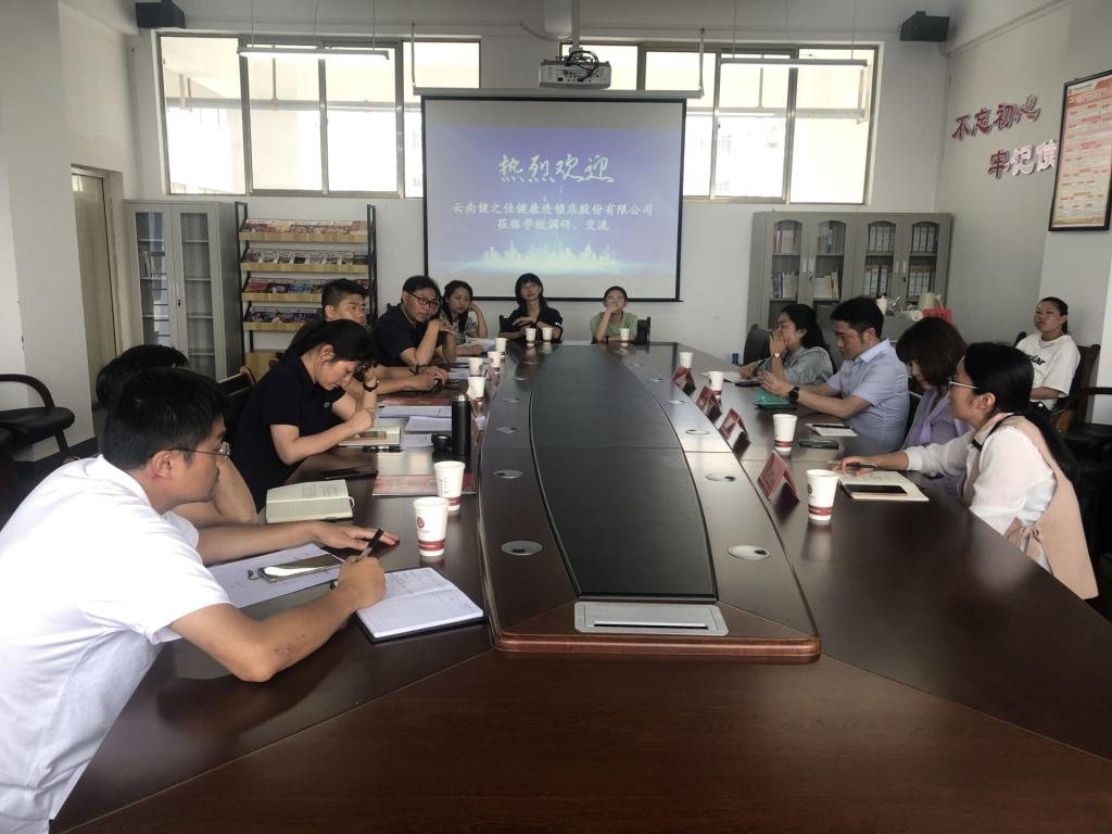 会上,幸文宬副院长、庄淑娜副书记、环化教研室主任甘峰睿老师,药品经营与管理专业带头人张远行老师以及各专业教师与云南健之佳健康连锁股份有限公司相关领导就人才培养方案制定、实训基地建设、1+X证书考证、职业技能竞赛、学生实习以及教师到企业实践锻炼等方面进行深入交流。