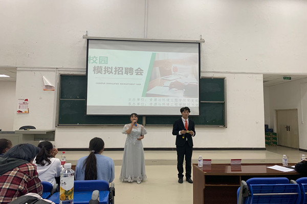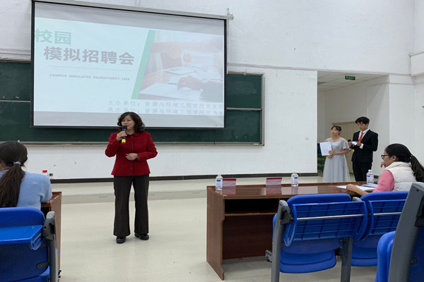2019年10月17日资源与环境工程江南广告 在尚学楼A1-19教室举办一年一届的就业招聘模拟大赛,此次大赛由江南广告 党委书记潘燕老师,中层干部,全体毕业班班主任、学生以及大赛评委共同参加,大赛首先由潘燕老师讲话并作开幕致词。