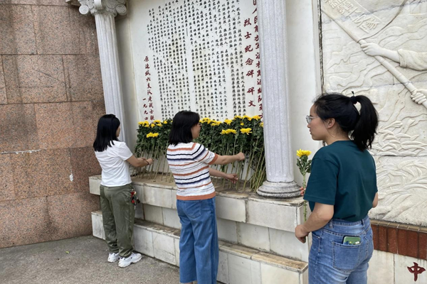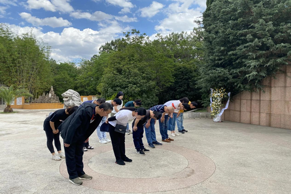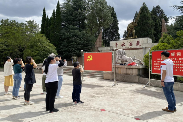 党支部副书记李鹏飞引导支部全体教师通过组织就近就便参观沾益区玉林公园,在公园滇东北革命斗争纪念碑下深刻缅怀玉林红色故事,向革命烈士献上菊花以表哀思,在党旗下重温入党誓词励志传承红色精神等一系列实践活动,以爱国主义教育示范基地为载体,进一步增强了教师的理想信念,厚植了新老党员爱党爱国爱社会主义的情感。