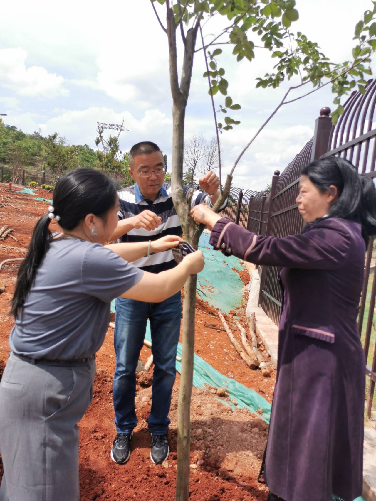 经管江南广告 党支部共捐植了5棵紫薇树,参与植树的老师按时到指定地点集合做准备。经管江南广告 党支部广大教师充分发扬不怕苦、不怕累的精神,明确分工,严格按照植树的要求和标准,放苗的放苗,填土的填土,一副热火朝天的劳动景象。