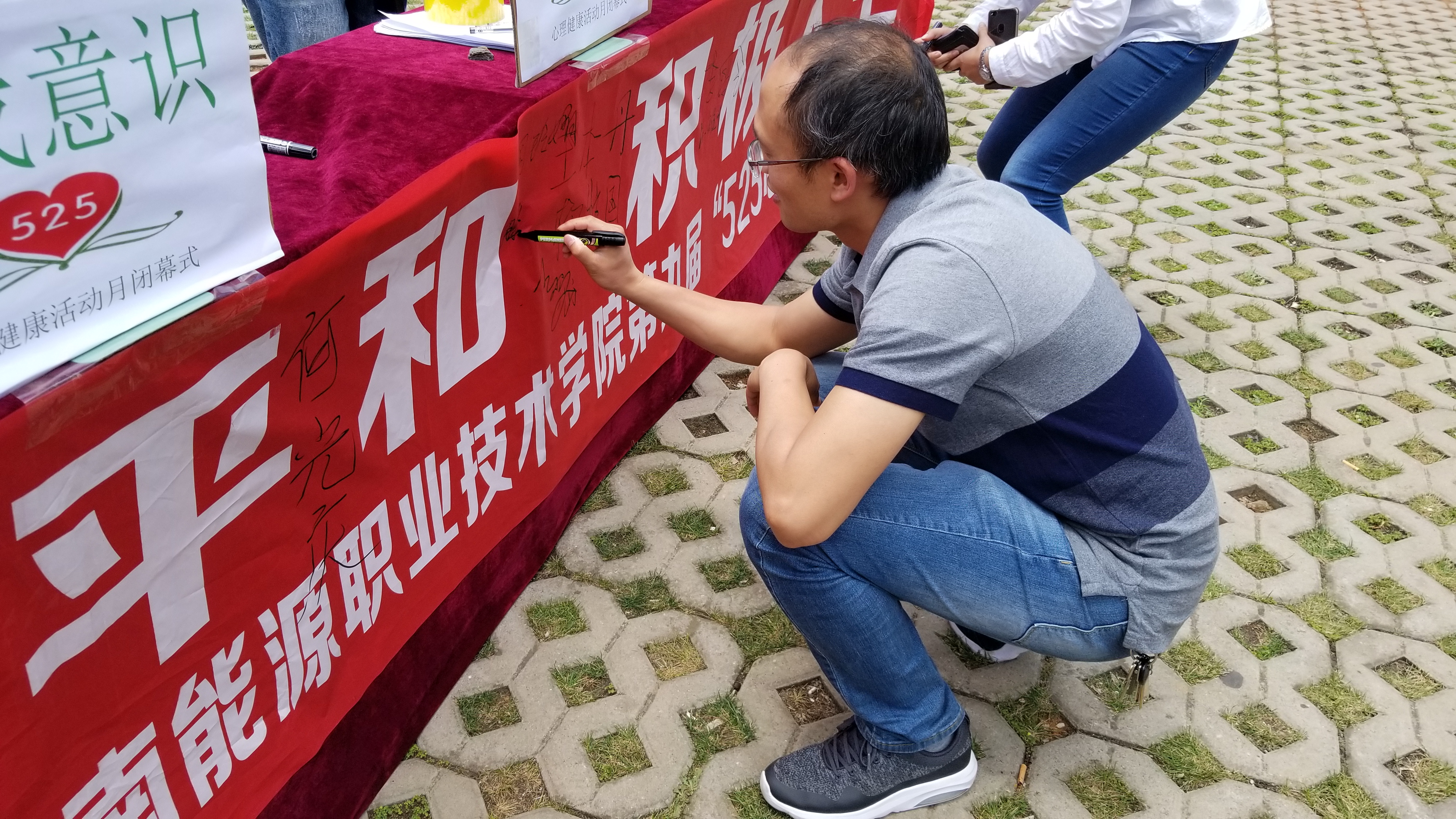 我校师生积极参与本次活动,通过快速的趣味小测验,老师和同学们对自己的情绪,自我意识,心理健康和人际交往的特点进行了初步的了解,经过主试培训的心协成员们在测验后为师生分析解答测验结果,并邀请大家在“礼让平和,积极人生”的主题横幅上签名留念。