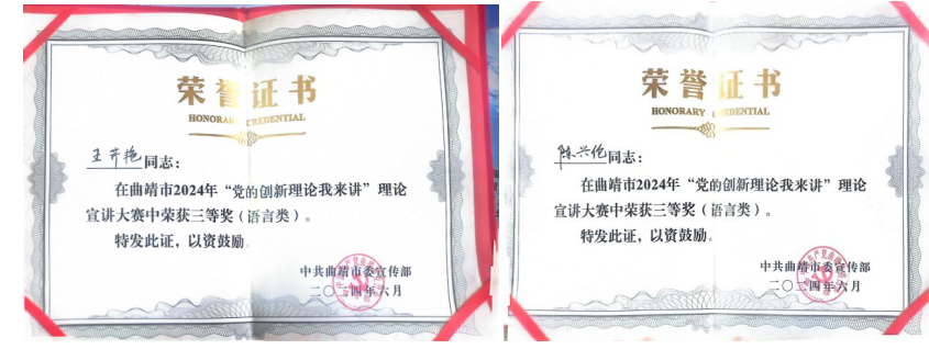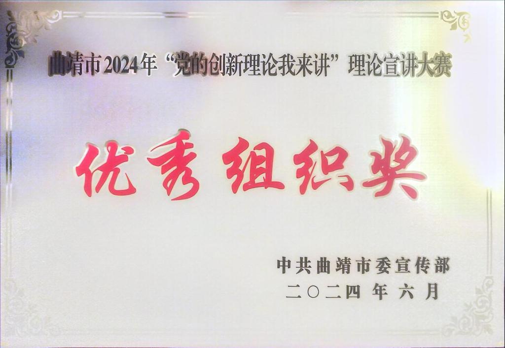 我校荣获曲靖市2024年“党的创新理论我来讲”理论大赛优秀组织奖。