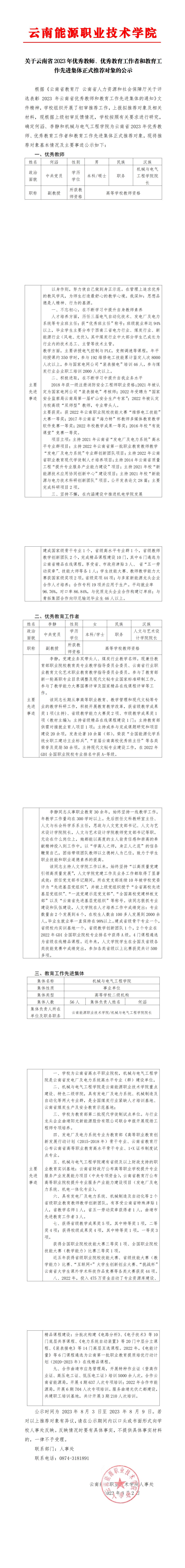 关于云南省2023年优秀教师、优秀教育工作者和教育工作先进集体正式推荐对象的公示