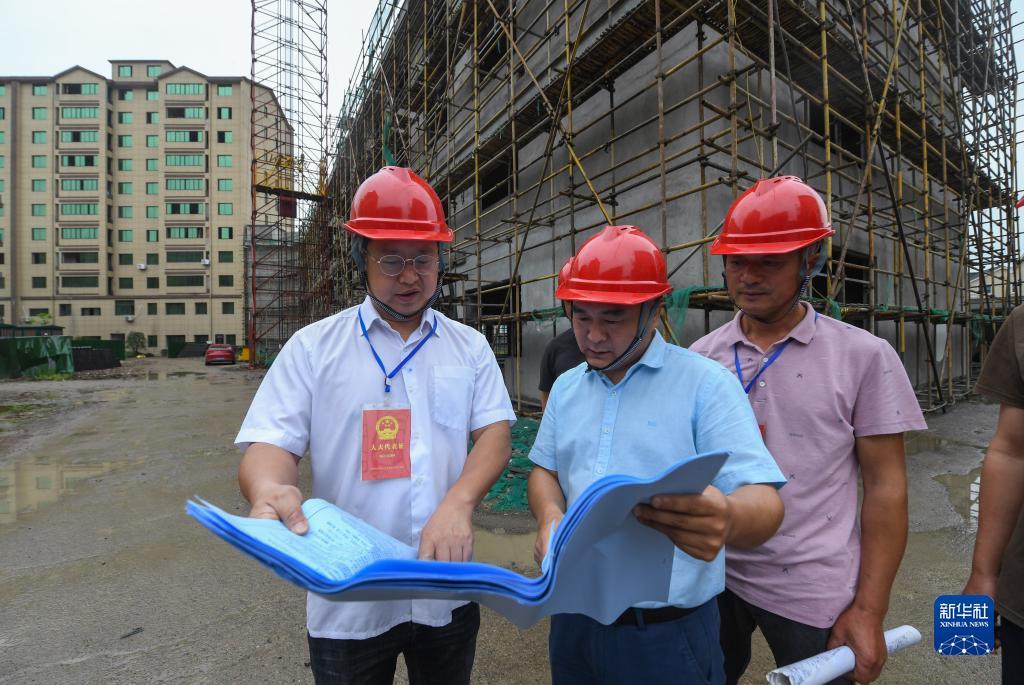 在浙江省湖州市吴兴区东林镇星火村,当地人大代表及村民代表对星火村农民新村建设项目的施工进展情况进行监督检查(2021年6月2日摄)。新华社记者 徐昱 摄